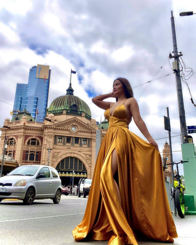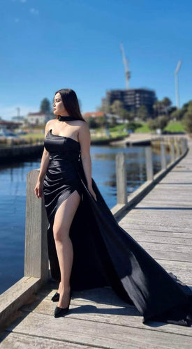 Julie wedding dress ,debutante dress with slit and pockets ( straps removable ) .