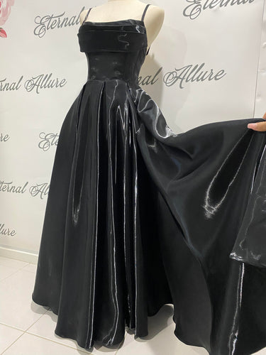 Lucy black wedding dress , formal dress(with pockets, slit)